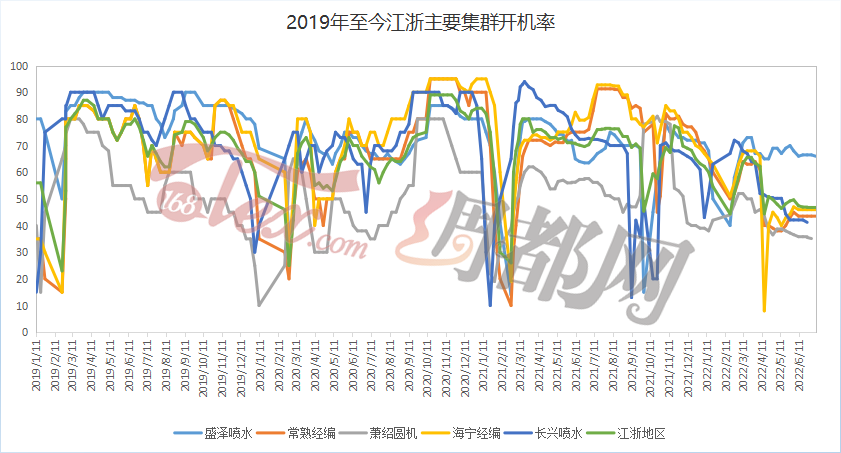 二是企业开工困难。在织造行业中,有条件在生产车间安装空调的企业属于极少数,如果想要维持生产,工人就需要忍受炎炎酷暑,长时间在高温下工作对身心都是巨大的考验。如果下游供不应求,厂家还可能采用高薪、奖金等手段维持生产,但现在订单数量本就不足,因此就有不少企业选择了降开工,有的企业甚至直接放假。