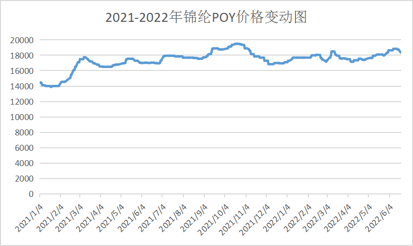 尼丝纺热卖的时候锦纶丝价格一路上涨,去年高价可达19500元/吨(以POY为例),与去年低价时相差了将近6000元/吨,当然去年的原油价格还没有那么高,只不过是因为去年受尼丝纺面料的影响,锦纶丝价格直线上涨。