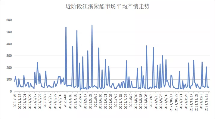 跌价已成常态,自从十月底开始进行的涤丝促销转眼间已经经过了两个月的时间,聚酯工厂想要提高销量只能靠不停的吆喝促销来达到目的,甚至在不少时候促销都没有人愿意买账,但是近促销的作用似乎比11月时来的有用,从江浙聚酯产销走势图上可以看到,涤丝产销整体呈现脉冲式的走势,产销以一日冲高为主,而12月份以来产销一日游的都与促销的日子刚好吻合。