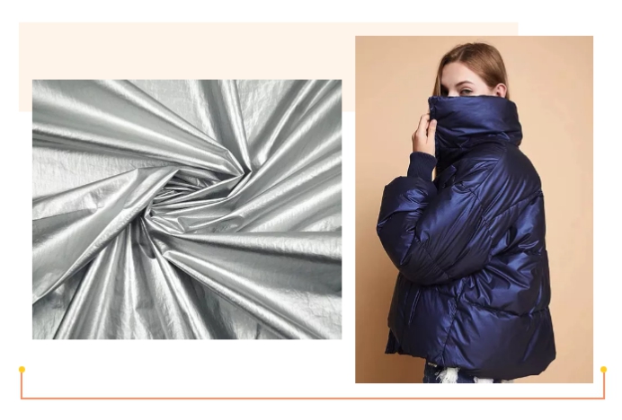 离型纸面料具有很强的金属感,与镭射面料相比,离型纸面料偏哑光,看起来更高级!特别是运用在羽绒服、棉服上,独特的离型纸贴膜使得服装具有不透风、不透水,防绒性的特性,并且具有很强的时尚感。今年下半年,很多品牌服装设计师对这种类型的面料需求较大。这也成为贸易商下半年面料开发的方向。