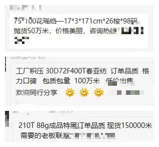 机器不停产,库存只能无休止增长。并且这类小厂在市场上往往是没有门市部的,因为一个门市部一年几十万的成本实在太高了。少了门市部自然是少了一个重要的客户来源方式,终这类隐秘在角落里的织厂大多只能靠着老客户支撑,偶尔在各种纺织群里发点广告也被其他信息迅速淹没。