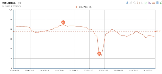 织机开机率方面,有多开的在八成以上,有少开的在一半以下,平均下来整体织造企业织机开机率在7成左右,比去年同期降低了大概1-2成。