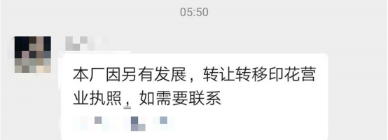 据一位数码印花厂老板介绍,他们规模不大只有五台出纸机,一台毛毯机。今年订单少,他们工人减到只剩一个,但是订单还是不足以维持生产,后决定直接关闭不做了。市场上类似他们的印花企业有很多,在订单减少与利润萎缩的双重打击下他们选择出售营业执照也就不足为奇。