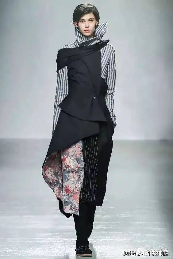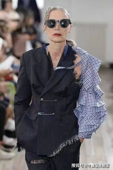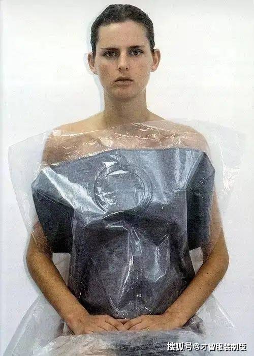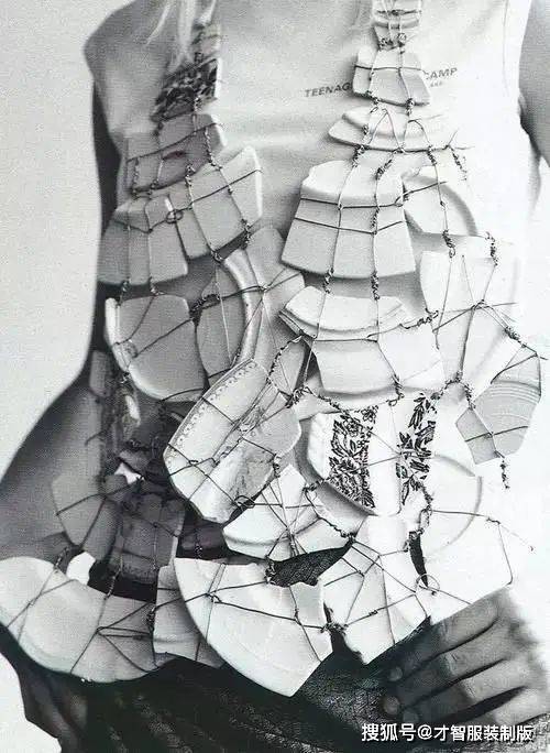 打破衣服的常规结构。增加一切无关联的元素,或减少一些原有结构。比如增加不使用于服饰的材质,或是将衣服做毛边、撕裂、破洞。