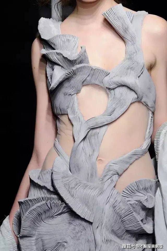三宅一生的褶皱设计带有明显解构主义,对传统服装的观念造成了强烈冲击。