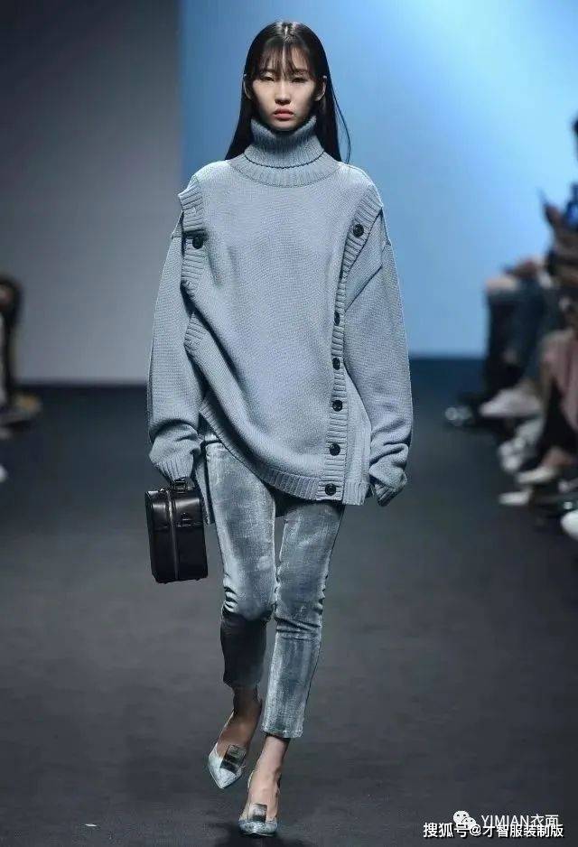 运用了大量的Oversize廓形和不对称设计,从衣领、衣长、袖子长短等方面做出不对称的效果。用别出心裁的不对称裁剪,颠覆普通衣物的刻板无聊印象。
