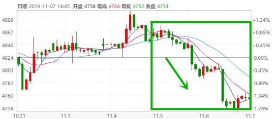 11月6日午后,PTA期货面画风突变,一改前期稳步运行,盘面突然一路下行,并且其跌势蔓延至7日。期货面不仅连续两个交易日走跌,主力合约分别下跌1.44%、1.7%,并且持续跌破了4800点;截至7日15时收盘,主力2001合约以4754元/吨收盘,创下年内新低位!