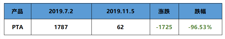 PTA作为聚酯产业链的大佬,曾吞噬了整个产业链的利润,但随着产能的迅速扩张以及下游需求的不足,PTA“呼风唤雨”的时代一去不复返,尤其是利润方面,从年内高位1787元/吨已经跌至62元/吨,跌幅超96%!