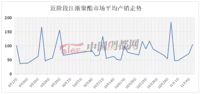进入9、10月份以后,涤纶长丝产销并不理想,除常规补货以及开票需求之外,织造厂家对涤纶长丝的需求并不强烈,2个多月以来,涤纶长丝产销超百行情仅有12次,这与传统“金九银十”预期相差甚远。