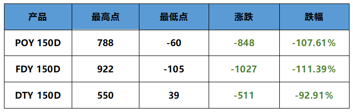 产销不佳,需求不足,涤纶长丝库存也同属高位,利润被严重挤压。截至10月底,POY 150D利润缩水程度超107%,DTY 150D利润缩水程度超92%,FDY 150D更为严重,利润缩水幅度超111%!