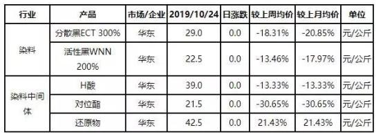 年初时候响水化工厂爆炸造成化工领域激烈震荡,染料价格飞速上涨。以分散黑ECT300%为例,一夜之间价格就由47元/公斤跳涨10.6%至52元/公斤,其他各类染料也都有5%以上的涨幅。