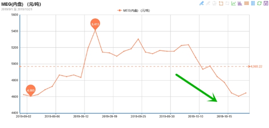 虽然九月份乙二醇市场颇为轰轰烈烈,价格也是坚挺向上,整体表现不错;但十月份以来,市场就有冲高回落的情况,贸易商心态表现谨慎,观望中哀嚎一片,整体持货意向偏弱。截至21日,大商所MEG主力2001合约终盘收跌至4515点,现货价格则回落至4650元/吨附近。