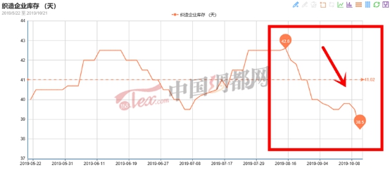 根据中国绸都网样本企业数据监测,近阶段盛泽地区喷水、喷气织机开机率上升至90%左右,较前期有所回升。除此以外,随着市场走货带动,前期积压的高位库存压力,终于有所缓解;根据中国绸都网样本企业数据显示,目前盛泽地区的坯布库存大约在38天左右,较前期40天左右的库存天数已经有所下降。