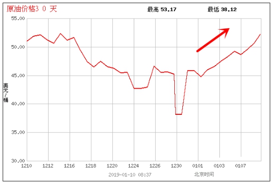 下跌了将近四个月的原油,终于抬头了!近日来国际油价更是持续七连涨,WTI原油新收于52美元/桶之上,截至9日收盘,美国WTI原油期货报收于52.36美元/桶,收盘价较12月低位上涨23%;布伦特原油期货报收于61.44美元/桶。
