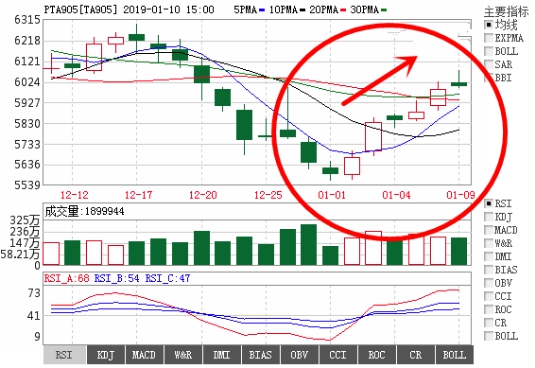 在国际油价强势助力下,聚酯原料PTA期现货市场表现也较为强劲。期货方面,PTA期货盘中冲破6000点,较1月初价格大涨了400多点;截至10日,郑商所PTA期货主力1905合约终盘以6002元/吨收盘,与2日收盘价相比,大幅上涨了414点,短短几个交易日涨幅就达到了7.41%。在期货的拉动下,PTA加工费已达到了近千元的水平。