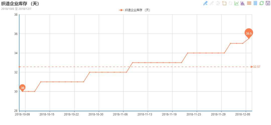 小编认为这些布老板的忧虑也不是不无道理,现在织造产业链上下游都处于一个高库存的状态,这也可以看出织造市场行情不容乐观。据中国绸都网的监测数据显示,织造厂家的库存在35天左右,库存累积走高。