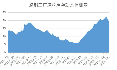 另外,此次涤丝产销走好只是减缓了聚酯工厂的库存压力,本周下游集中备货,涤纶库存进一步回落。从中国绸都网统计数据来看,现如今涤丝市场整体库存已经围绕至15-23天;具体产品方面,其中POY库存集中在13-17天,FDY库存至15-20天附近,而DTY库存则至21-27天左右。