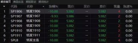 结果,纸浆期货上市首日,上市交易的六个品种全线跌停。