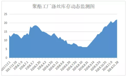 当前下游需求不济,乙二醇供应量依然表现充裕。从今年的进口量上来看,截至9月,乙二醇总进口量在753万吨,高出去年同期总量达93万吨。下游面料市场旺季失约,面料织造市场订单不足,聚酯市场产销持续疲软下,涤纶长丝市场库存提前累库,11月库存总量已超过了18年春节期间的库存高位。如今聚酯厂家减产降幅,聚酯开工开工回落,导致乙二醇的需求量直接受阻。