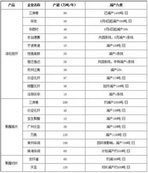 吴江新民减产10%,涉及长丝150吨/天,切片150吨/天;