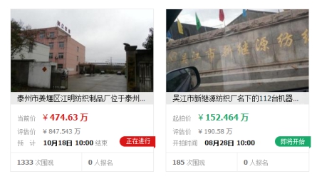 和朋友聊天的时候听说某家老板又拍下了一块地,那工厂原本的那家公司前不久破产了,由于欠了外债,只能靠卖工厂来还钱。虽然不知道那家公司为何倒闭,但想必一定是利润成了负数才会倒闭。而在网上也总是能看到一些纺织厂被拍卖的信息。