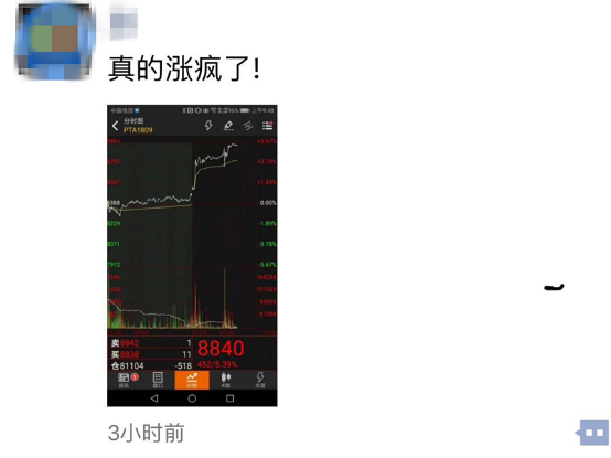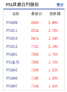 而在PTA1809合约的带动下,PTA其它合约也有了进一步的跟涨。