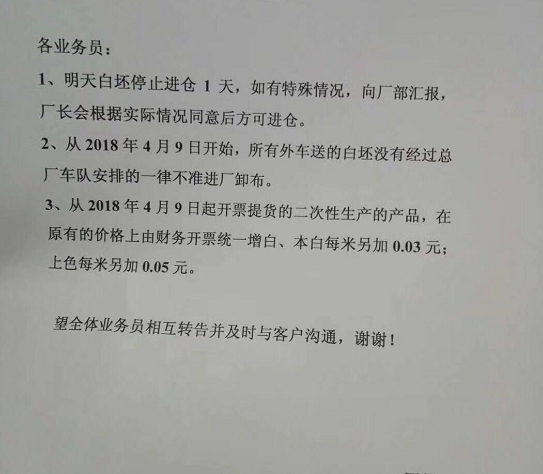 目前的情况 染费上涨是肯定的,但是没想到还要限制坯布进厂了,纺织老板表示:“我们能承受染费涨价,但必须能出货,不然客户那边没法交代。”现在是有钱难买出货快。看到这种情况,小编不禁感慨一句:做个生意真不容易啊~