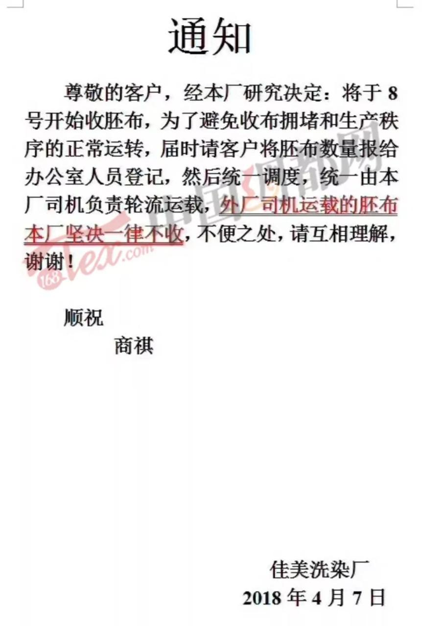 其实染厂出这样的决定也算是无奈之举,毕竟谁愿意拒客户以千里之外,有订单也不收、有钱也不赚啊!