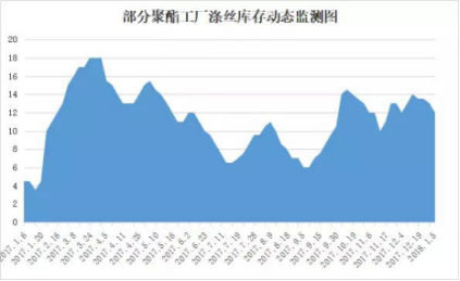 在几次产销回升的带动下,聚酯厂家库存压力有所释放,根据中国绸都网数据统计显示,目前涤丝市场整体库存围绕在5-17天附近;其中POY库存集中在4-8天水平,FDY库存则至2-6天附近,而DTY库存至13-24天左右。