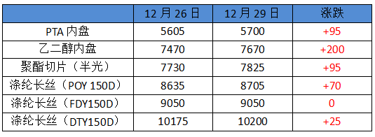 在PTA装置及原油的突发利好下,PTA及乙二醇止跌回升,聚酯市场纷纷跟涨。