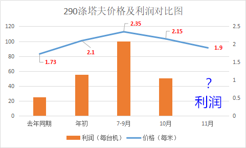 7-8月份行情好的时候,织造厂每台织机每天基本上都有100元的利润,而10月份行情开始降温,涤塔夫织造厂家每天的利润也回落至50元/台。不过涤塔夫10月份那会儿厂家基本没什么库存,所以表面看着还是很不错的。