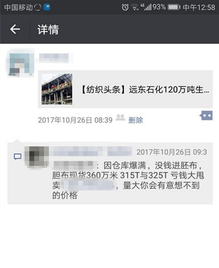 笔者不得不说,在双十一前进行大甩卖,是个很好的想法。下游采购需求在“双11”、“双12”等节日的刺激下放大,棉服、羽绒服等秋冬服装为主,因此胆布的需求也进一步放大。那么在此时,进行薄利多销的销售策略,确实是个不错的选择。然而公开低价甩卖,似乎有失风范,成了行业垄断。其实该胆布超市老板这个举措也是无心的,但因为这个小小的失误,却把自己推到了风口浪尖,成了近阶段同行的公敌。