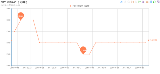 出现库存的360万米胆布,大多数是315T与325T这类高密度产品,它的原料是50D的FDY丝。近期,50D的FDY丝销量一般,较9月明显下降,因此也可以看出,这个规格的产品需求不大。众所周知,这类高密度的产品价格也相对较高,因此多用于高档服装的里料。而双十一前,大量的单子都是市场单,用于双十一电商促销,服装都较廉价,所采用的里料自然也是低价的,而不会使用价格昂贵的高密度里料了,这就导致了高密度胆布在双十一前滞销。