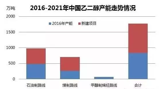 按照在建项目统计,到2021年我国乙二醇产能将达到1759万吨。