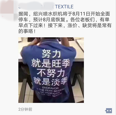 传闻:8月11日起,绍兴喷水织机全面停车,预计月底恢复!