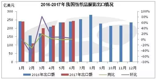 2016-2017年我国纺织品服装出口情况