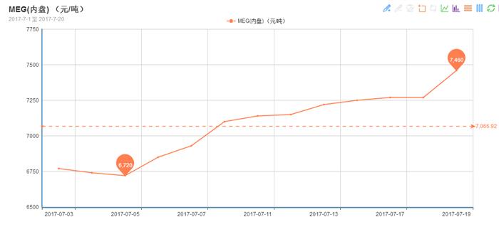 这两天PTA利好褪去,乙二醇电子盘上冲动力也略显不足,就在两大原料行情出现走弱迹象的时候,乙二醇现货如同一匹烈马突破了缰绳,价格直线上扬。7月19日,乙二醇电子盘小幅收涨50元/吨,现货价格却飙升了190元/吨。