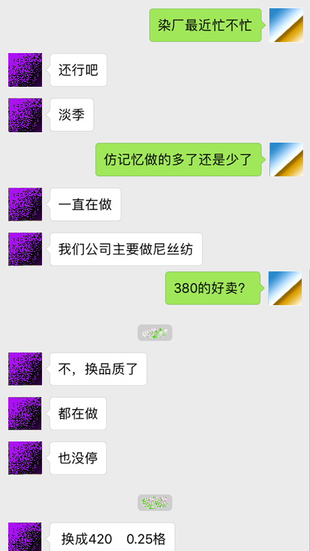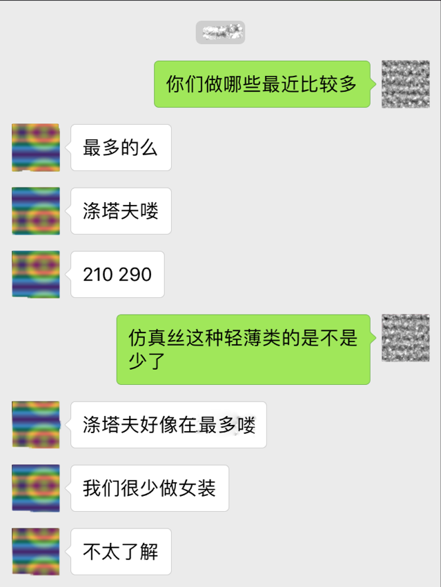 旺季似乎真的在延续,明明应该是淡季的月份,涤塔夫和尼丝纺仍然是卖的很好。据了解,在做380T0.08格尼丝纺订单的时候根本拿不到货,拿着现金排队等着提货。这次做420T0.25格尼丝纺,在得知有点苗头要下的前期就已经安排定织,也算得上是赌了。