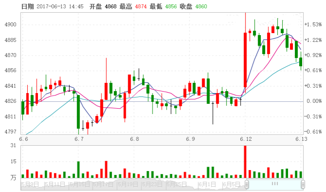 上周国际油价一度承压大挫,在利好提振下,近两日来原油期货处于止跌修复阶段;目前纽约原油7月期货略升至46.08美元/桶,布伦特8月期货上涨至48.29美元/桶。在国际油价向好提振下,近日来PTA期货连续收涨局面,继12日夜盘收高后,13日当日主力1709合约终盘收涨于4860元/吨,其成交量攀升至1067536手,持仓量围绕在1699754手。期货面带动,PTA现货行情稳步抬升,内盘报价上涨至4790-4840元/吨左右,成交商谈走高至4740-4780元/吨附近。目前来看,PTA市场供需偏紧格局犹存,抗跌性较强。