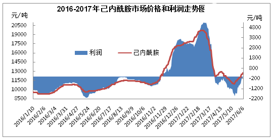 图1 2016-2017年己内酰胺市场价格和利润走势图