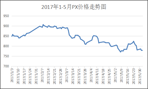 1-5月份以来,PX市场行情呈现先高后低的走势。春节前后,虽然终端需求下滑明显,但是国际油价高位运行,在成本上对PX形成强有力的支撑作用。另外,春节前后下游PTA的负荷高位,PX的需求并未大幅下滑。此外更值得一提的是,春节前日本东燃石油和韩国SK综合化学两套PX装置连续发生火灾事故,这两起PX装置事故的在春节前后对PX市场起到提振作用,PX1-2月份坚挺运行。