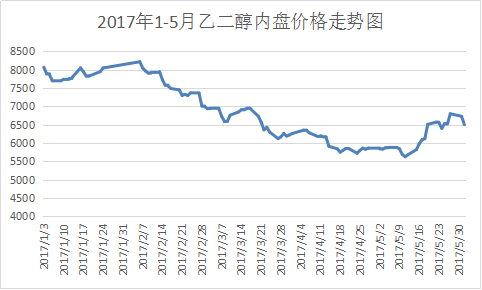 今年以来乙二醇的行情是让市场捉摸不透的。春节前,乙二醇在需求及供需的强力推动下,价格不断刷出年内高位。在市场不断做多的情况下,春节归来,乙二醇行情瞬间遇冷,开启了长达3个多月的暴跌旅程,几近回吐去年10月以来的全部涨幅,行情萎靡不振,乙二醇现货交投受阻,市场库存居高不下,进一步压制乙二醇行情。进入5月,乙二醇进口量偏少,加上国内装置集中检修,乙二醇现货货源出现供不应求的局面。多头炒作、大厂护盘,乙二醇迎来在5月迎来牛市,电子盘的多次涨停更是把现货价格推向高位。但是在原油不断走低,多头获利离场之后,乙二醇跌势再现。截至5月31日,MEG内盘价格在6730元/吨附近,外盘价格在790美元/吨附近,较年初分别下跌1340元/吨、150美元/吨。