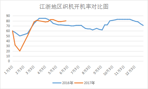 一般来说,5月中下旬,面料市场会逐步进入淡季,但今年来看目前行情依旧顺畅,厂家生产积极性尚存,开机稳健在8成偏上,部分产品更是交投活跃,从而带动坯布市场整体库存回落至偏低水平。