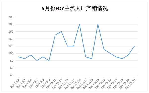 据中国绸都网监测数据显示,5月份的聚酯市场呈现销售放量的态势,涤纶长丝月均产销在100%-110%附近,其中FDY系列需求表现良好,几家主流大厂月内平均产销可达120%附近,处于顺利去库存的状态。