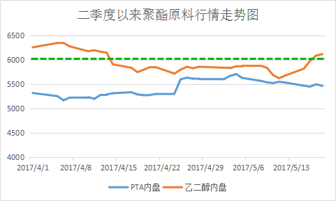 乙二醇成功逆袭,不过PTA期货却没有那么底气足,截至5月19日,PTA1709合约收于4968点,相比上周五上涨150点,现货价格小幅跟涨,上涨了135元/吨。同为聚酯原料,为何PTA和乙二醇会出现如此大的分化呢?除了原油、资金的助推之外,乙二醇自身基本面作用在5月也是不可或缺的。