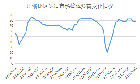 目前盛泽市场总体来说面料行情仍然较为稳健,江浙其他地区变化也是太大。据中国绸都网调查监测显示,近期江浙地区织造开机在78.5%附近,整体变化有限。