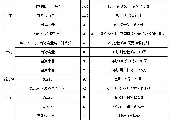 导语:2017年全球乙二醇计划内检修产能涉及1024万吨;其中对中国市场出口较多的日本、韩国、台湾、中东、美国装置检修较为集中,且从时间上看,检修多集中于1季度与4季度;受检修密集影响,预计1季度整体的进口总量保持稳中有降的趋势为主。而国内石化装置方面检修范围较小,目前看仅有华东工厂有检修计划,涉及产能86.5万吨;涉及产量7万吨左右。