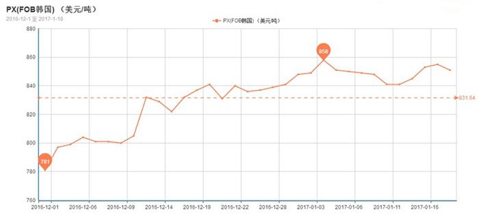 近期17年国内外PX装置检修计划已出台,PX装置将在3月中下旬起陆续检修,2季度将是PX的集中检修季。目前原油冻产协议已在有序推进,虽然诸多利空因素阻碍原油价格的持续反弹,但是沙特、俄罗斯在冻产方面做的努力让原油已不具备深跌的条件,市场预测2017国际原油价格或在50-55美元震荡运行,原油预期企稳运行,无论从成本还是信心上都给予较为有利的支撑。