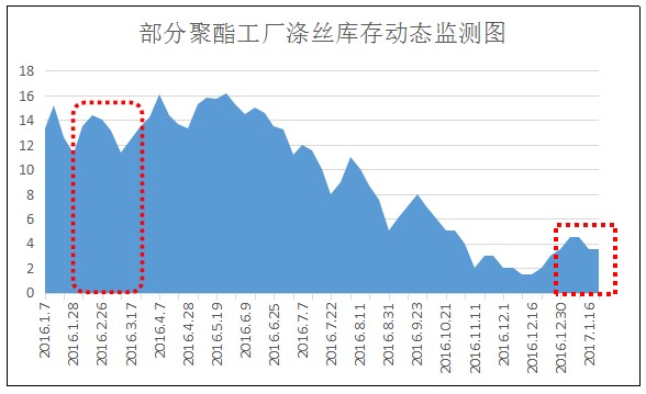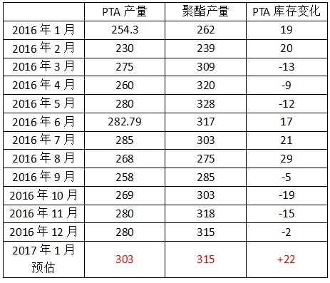 2016年四季度以来,聚酯市场进入“牛”市,库存持续走低。虽然1月份以来,聚酯产销清淡,库存小幅回升,但是近日下游市场尤其是加弹厂在放假的节点再度集中补货,使得聚酯厂家又一次顺利出货,降低了库存,但从目前的聚酯库存水平来看,春节后聚酯工厂的库存压力相对来说不会太大。去年春节聚酯市场检修高达近千吨,今年春节前后有近500万吨左右的装置要停车检修,相比之下,今年聚酯厂家春节期间开工不算低。此外,从各厂家的检修计划表上来看,今年春节聚酯装置的检修时间也在15-20天附近,2月中下旬各装置都将恢复生产,节后聚酯厂家需求恢复对PTA行情或能形成拉动作用。