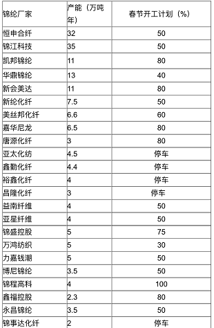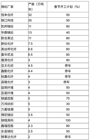 上图是一些国内大企业春节期间的开工计划,可以看出,亚太化纺、鑫勤化纤、裕鑫化纤等企业选择停产,大部分企业开工率都保持在50%~80%之间,甚至有企业诸如锦程高科开工计划在100%!与往年相比今年的春节开机情况明显提升了不少,可见大部分锦纶企业对明年的市场还是持非常乐观的心态的,毕竟市场就是这样,有钱可赚才会大量生产!